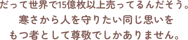 起毛が生む厚い空気層が断熱材となり、熱や体温を逃がさず温かさをキープ。